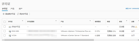 默认我们的ESXi和VCSA都没许可证书,我们添加下